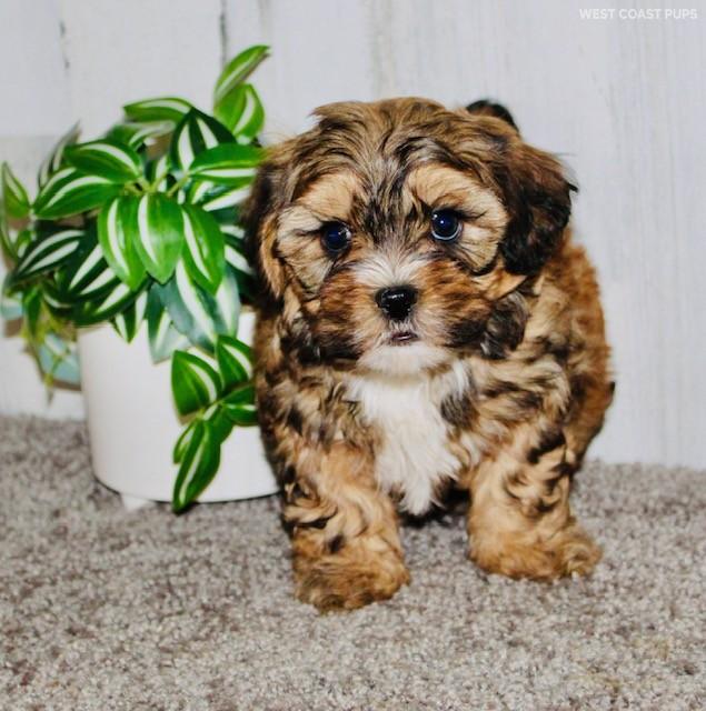 Her mom is a Shihtzu that weighs 15 pounds and her dad is a Mini Poodle that weighs 16 pounds. Nugget is the smallest pup in her litter!